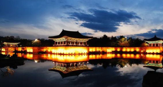 신라 시대 왕궁의 별궁으로, 밤에 조명이 켜지면 더욱 아름다운 야경을 감상할 수 있습니다.