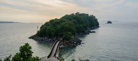탄도항에서 1.2km 떨어진 작은 무인도로, 썰물 때 4시간씩 하루 두 번 바닷길이 열립니다.