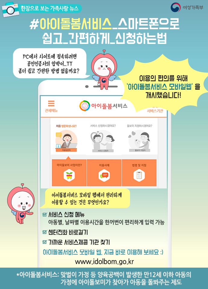 아이돌봄서비스를 통해 더 많은 가정이 행복해지길 바랍니다!