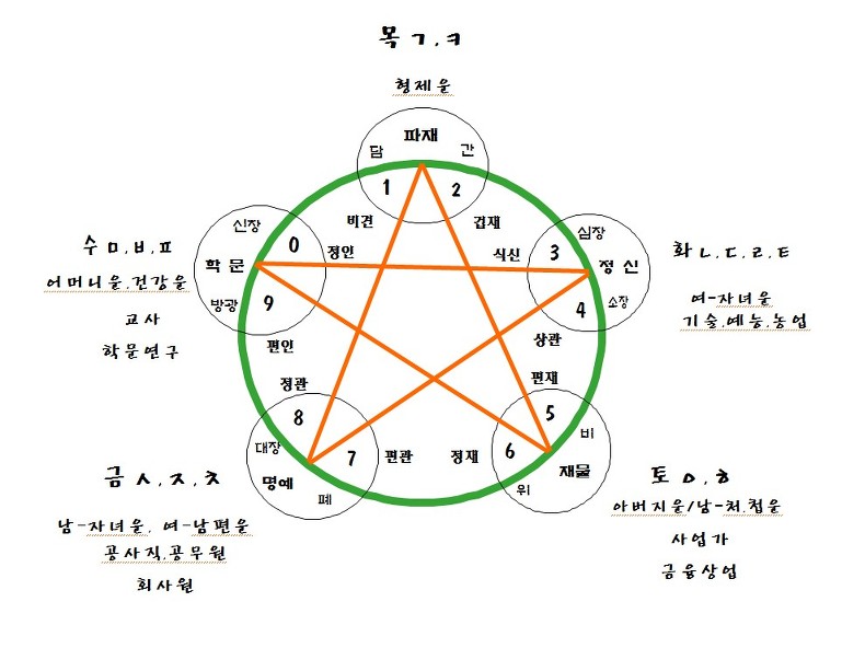 *성명학자들이 통상적으로 사용하는 한글소리오행 적용(수리성명학, 한글성명학)
