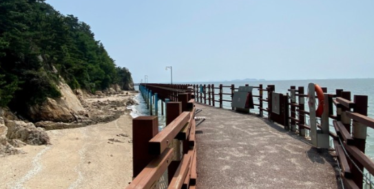 제부도 해안 산책길 입구 옆 빨간 등대를 우측에 두고 걸어 나가면 위치한 바다 깊숙이 걸어 나갈 수 있도록 만든 77m의 목재 다리 위 낚시를 즐길 수 있는 곳입니다.