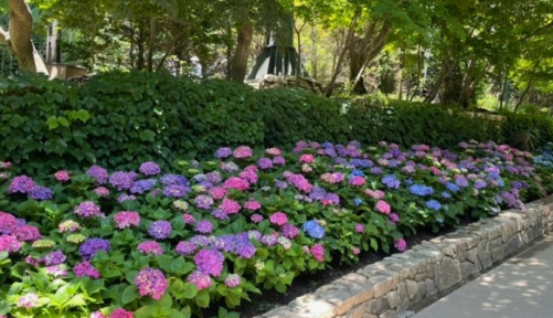 수국원: 다양한 수국 품종을 감상할 수 있는 공간.